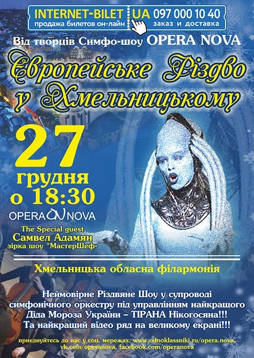 Європейське Різдво... це неймовірне Різдвяне Шоу у супроводі сімфонічного оркестру OPERA NOVA під керівництвом найкращого Діда Морза України ТІРАНА НІКОГОСЯНА!!!